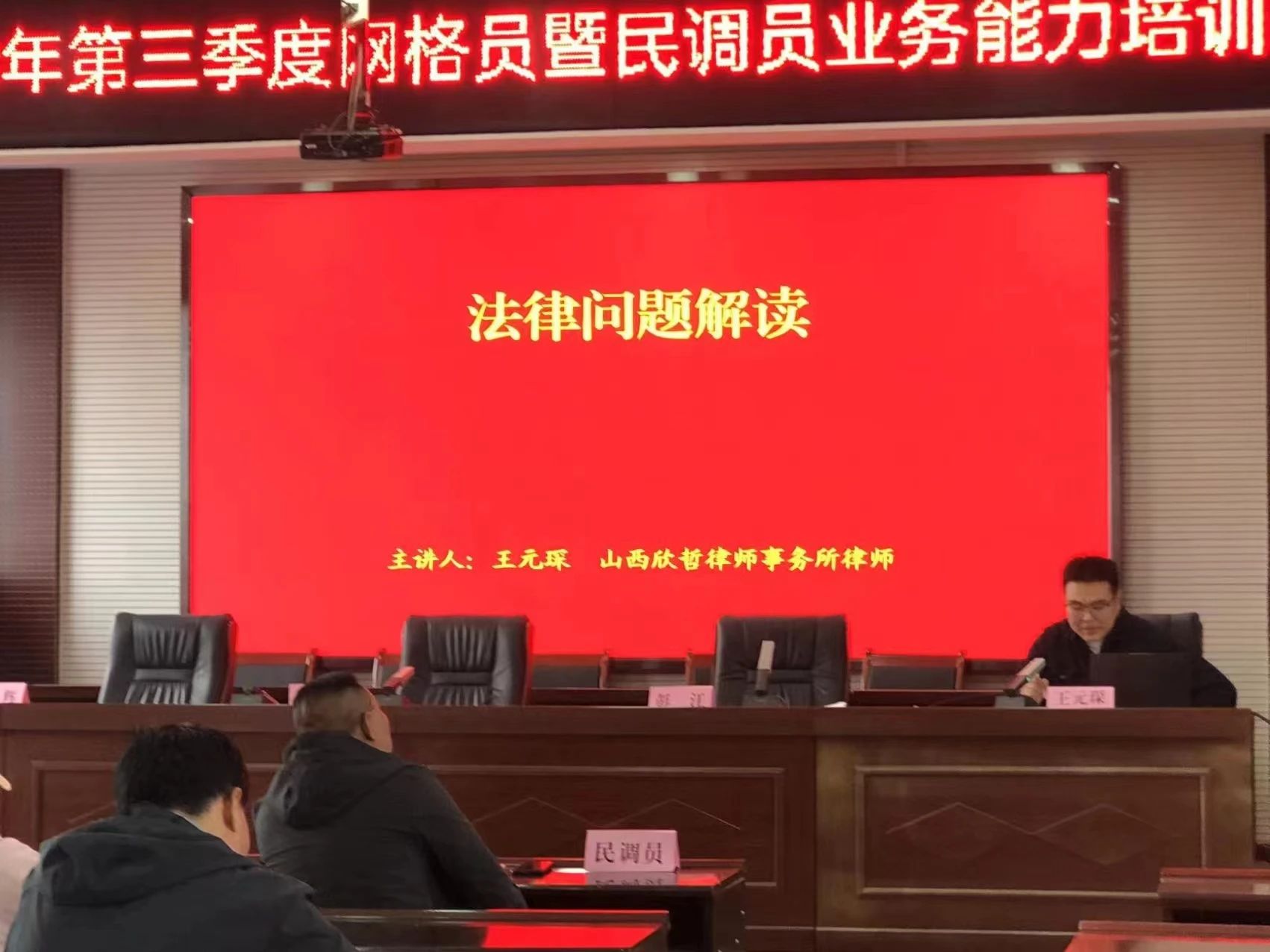 2023年9月28日,山西欣哲律师事务所王元琛律师受邀为卫庄镇政府开展“2023年三季度法律明白人”讲座。卫庄镇民调员、网格员等基层工作人员参加此次讲座。